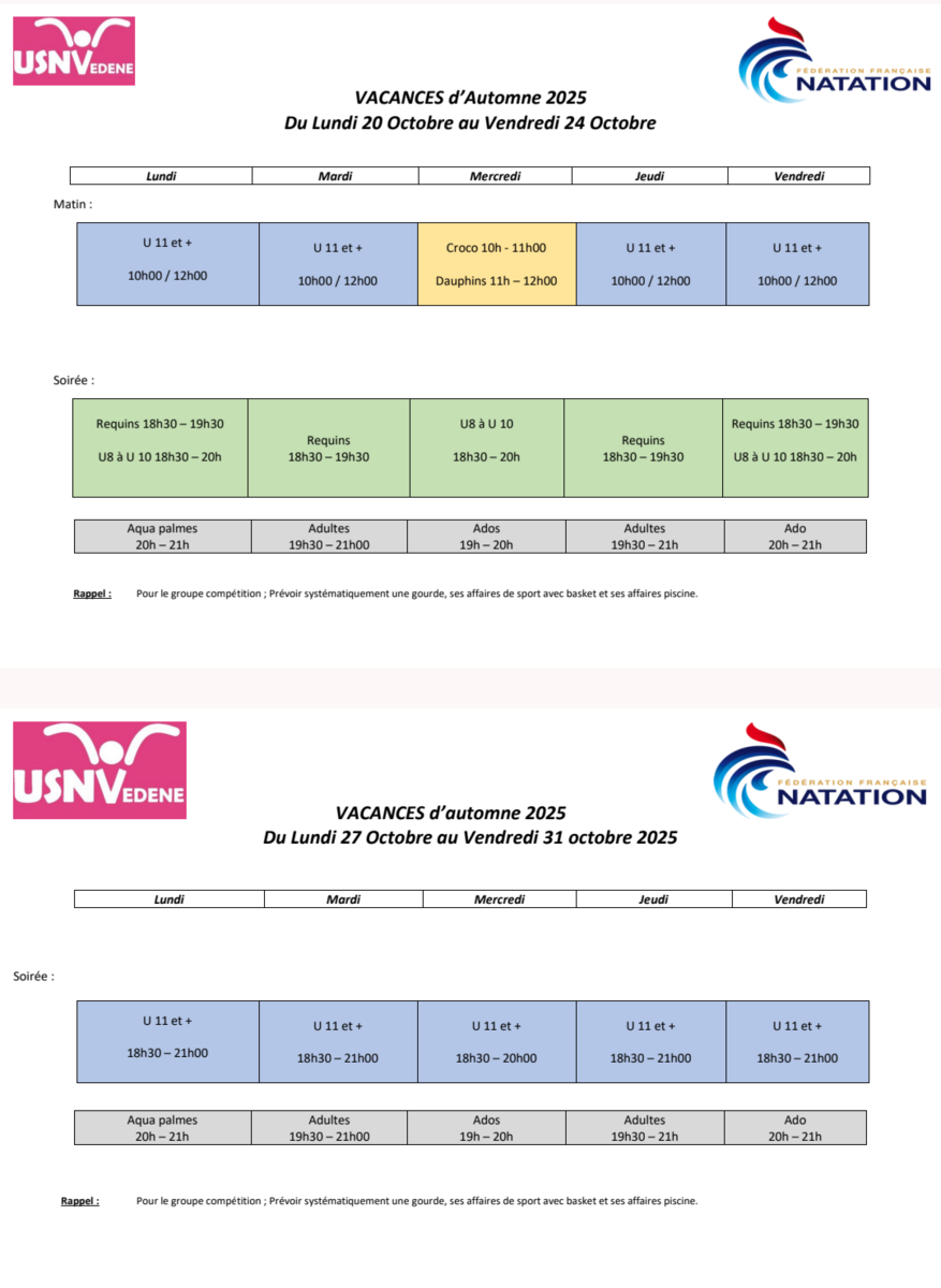 Nous rappelons que tous ces cours sont compris dans votre adhésion.
