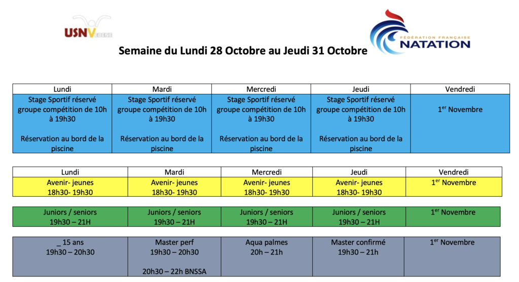 Planning entrainements
