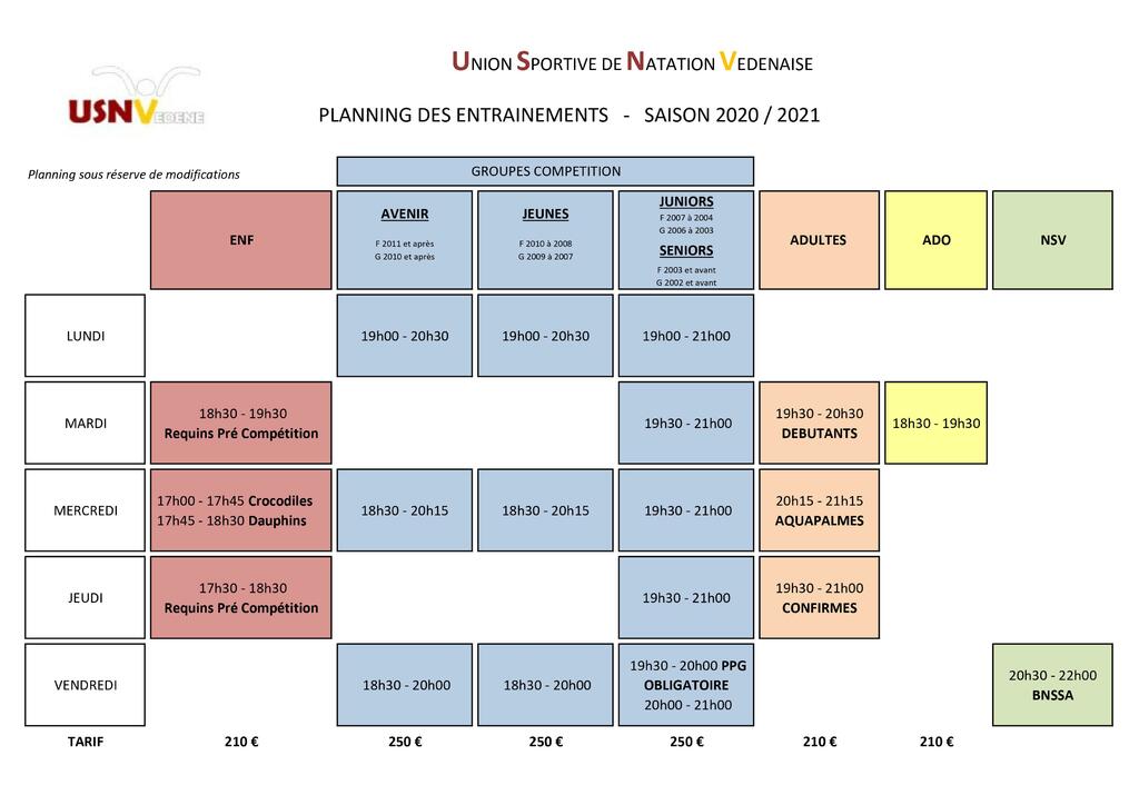 Planning entrainements